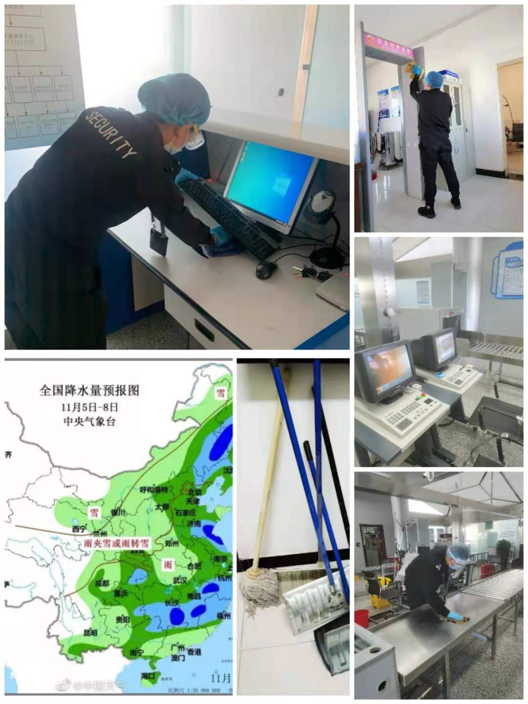 安检站结合秋冬换季工作“回头看”,持续坚持设施设备日维护保养制度,对安检现场工作区域的岗位设施设备进行擦拭除尘和运行测试,发现问题及时报告解决;此外针对冬季运行天气特点排查清点除冰雪工具,做好除冰雪准备工作,确保各类设施设备运行正常。