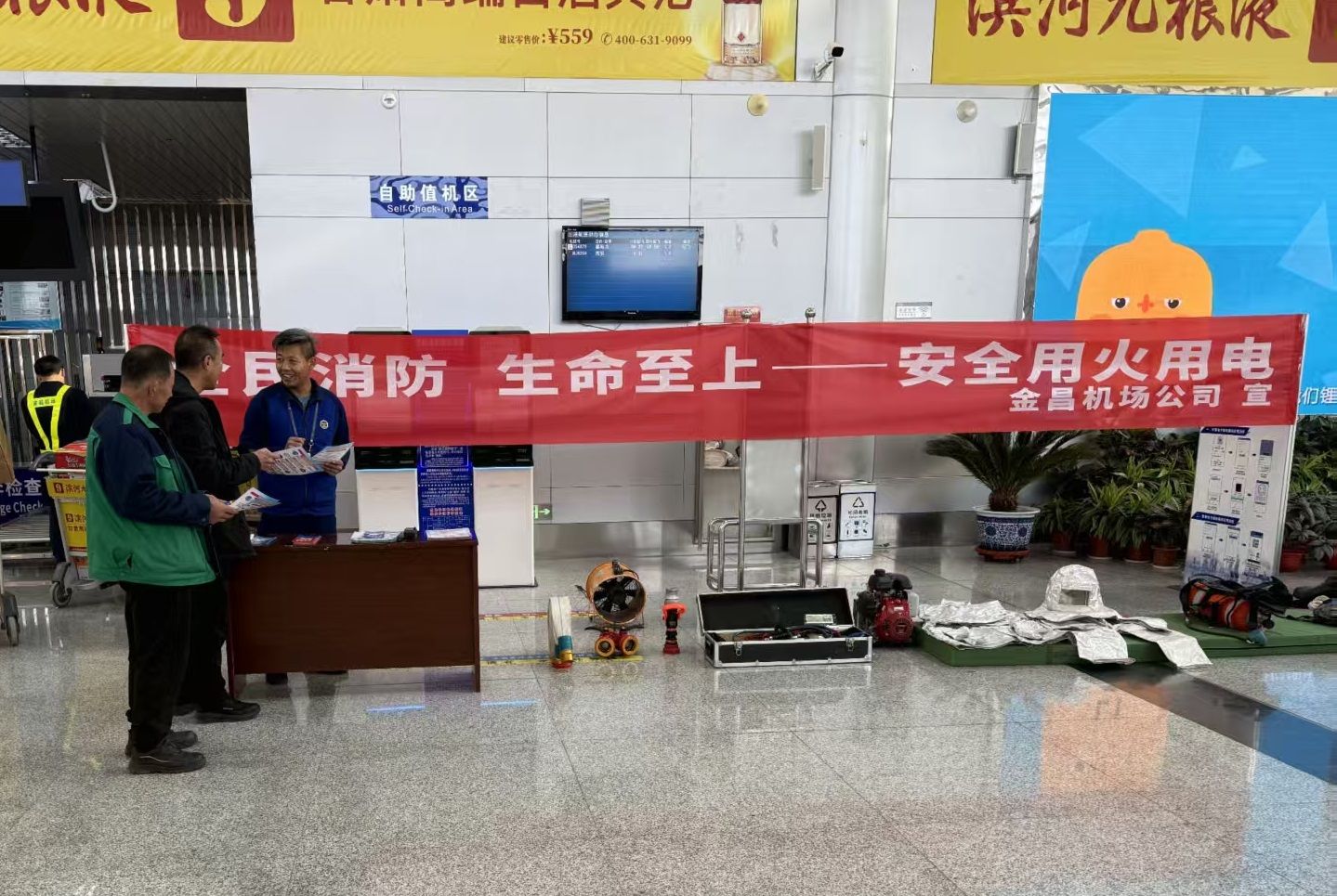 在全国第34个“119消防宣传月”来临之际,金昌机场公司紧紧围绕“全民消防、生命至上——安全用火用电”主题,正式启动系列宣传活动,旨在全面提升全员消防安全素养,夯实空港火灾防控根基,为民航安全运行保驾护航。