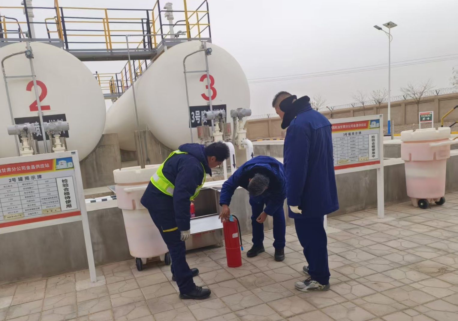 金昌机场消防大队对航油作业区配置的灭火器进行专项检查。柴作帅 摄