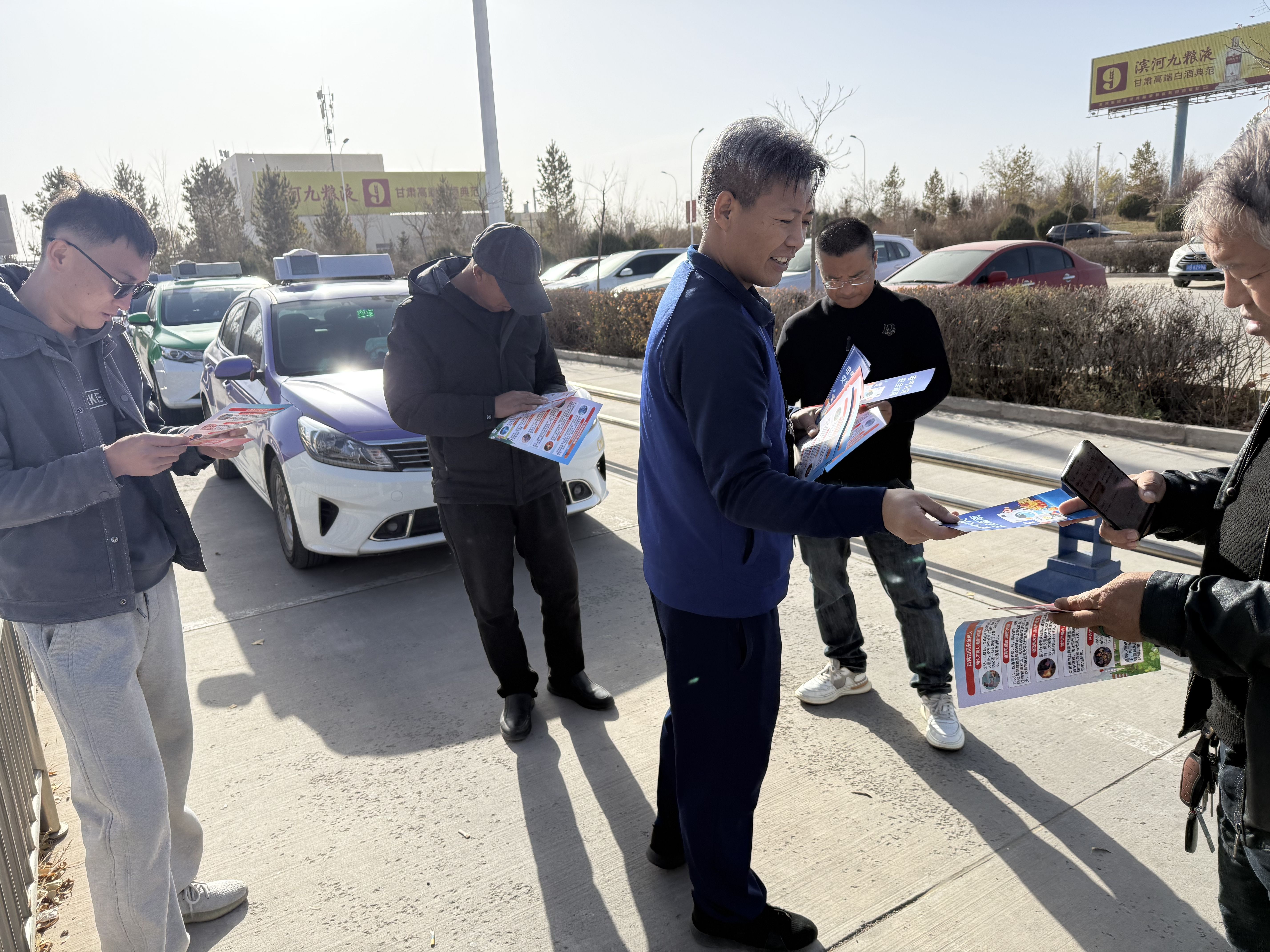 金昌机场消防大队向出租车司机发放消防画册并讲解车辆防火要点。任昊天 摄