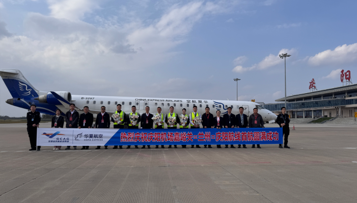 15:10,庆阳机场迎来由华夏航空执飞的嘉峪关=兰州=庆阳省内串飞航线首航。庆阳机场公司为机组人员佩戴庆阳特色香包并表示慰问和感谢。该航线的开通进一步优化了庆阳机场的航线网络布局,提升了省内城市间航空通达性,满足市民便捷出行及区域经济协同发展的需要。