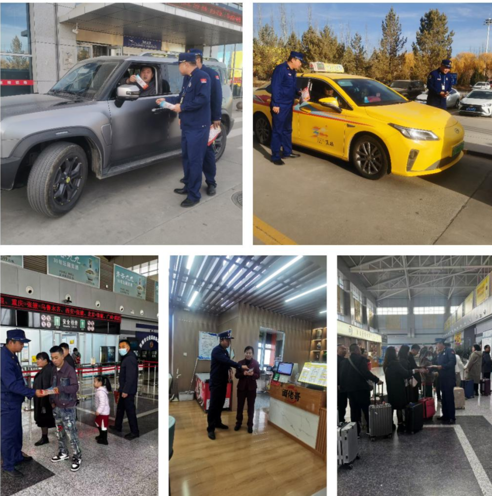 张掖机场消防大队向过往旅客、出租车司机发放定制版消防宣传手册。张蓓 摄