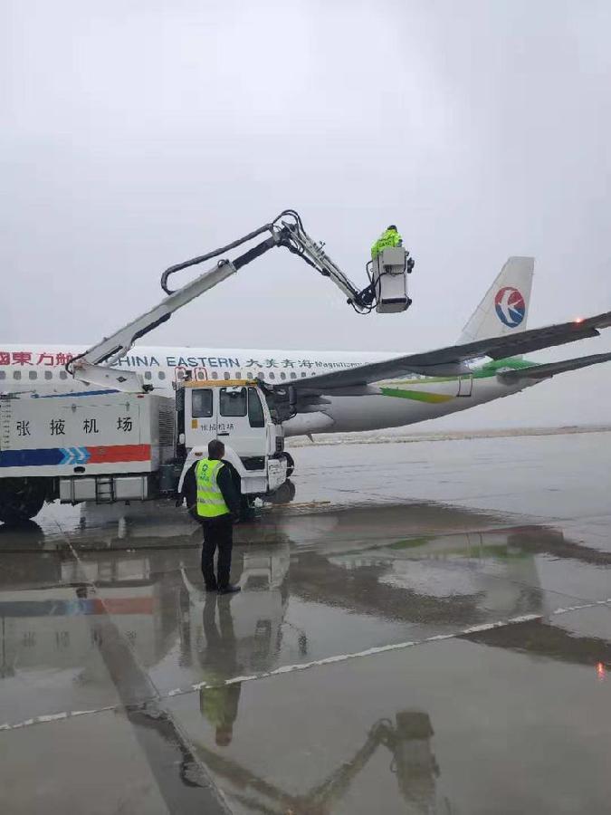 张掖机场圆满完成冬季首次飞机除冰雪保障工作