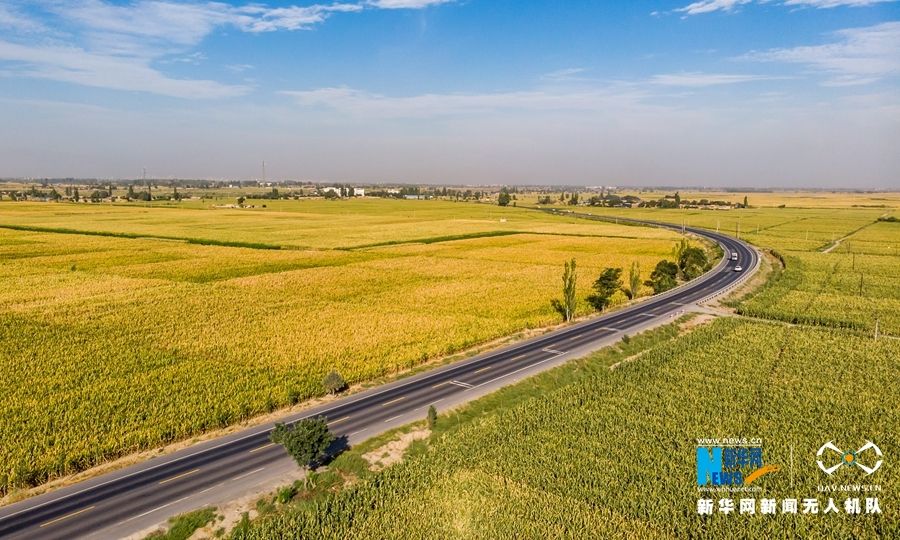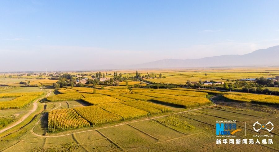 金秋时节,祁连山下的甘肃省张掖市甘州区田野铺金,秋色宜人,如诗如画。