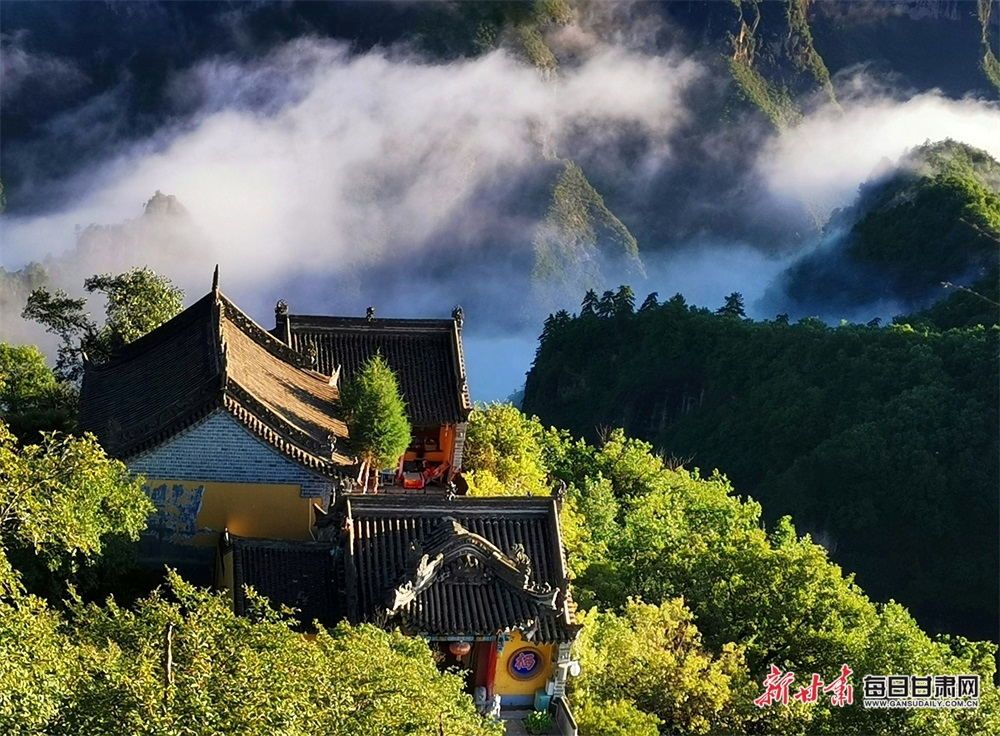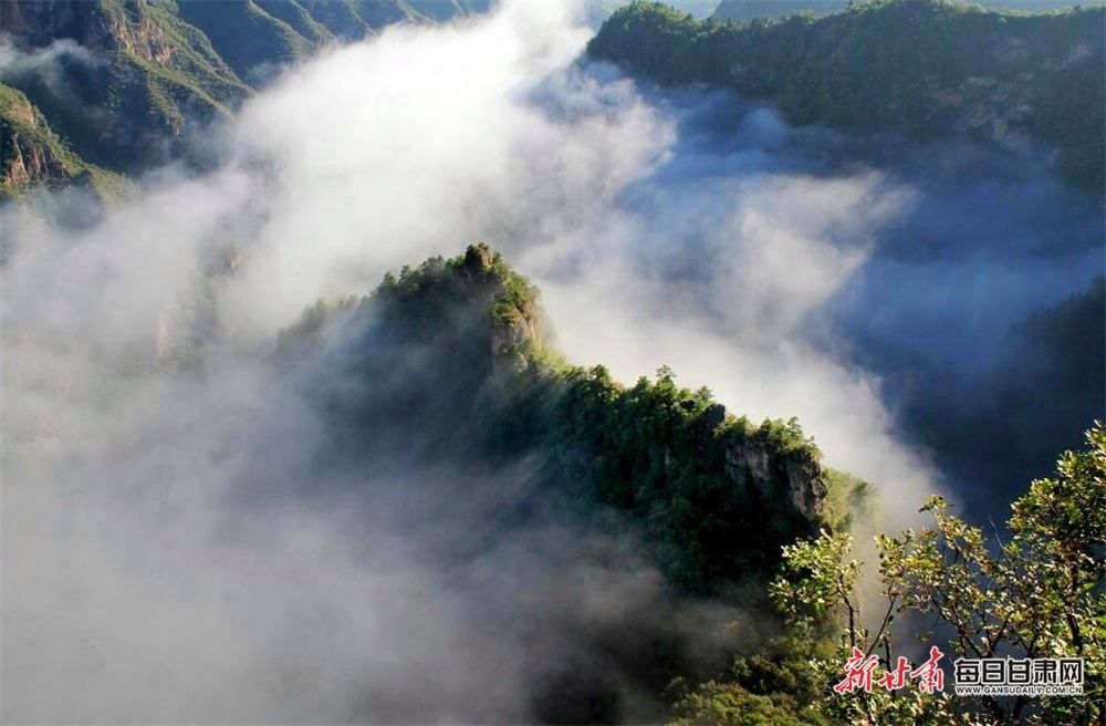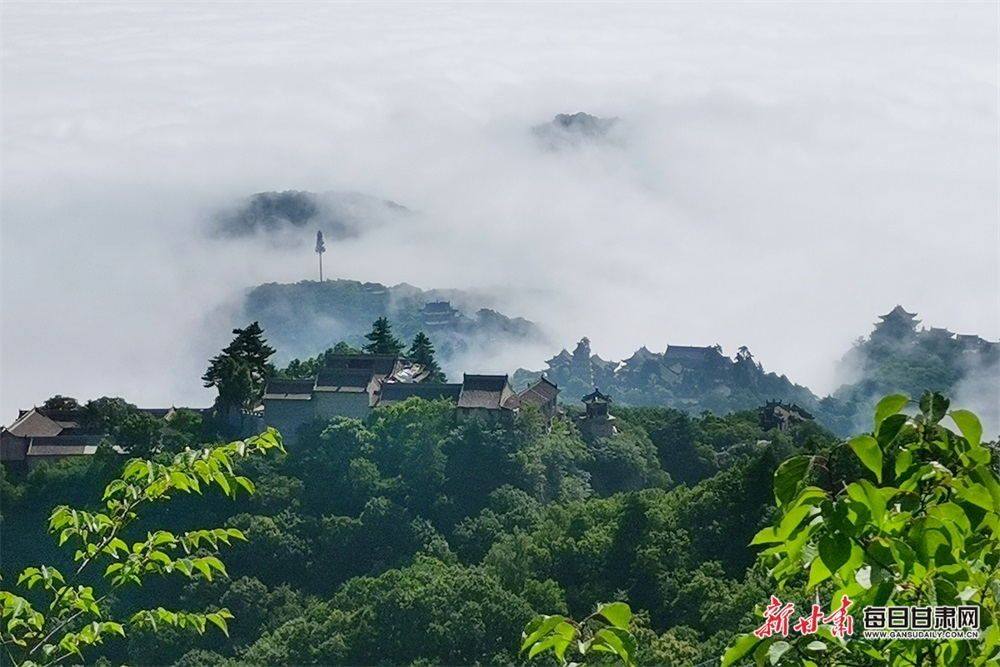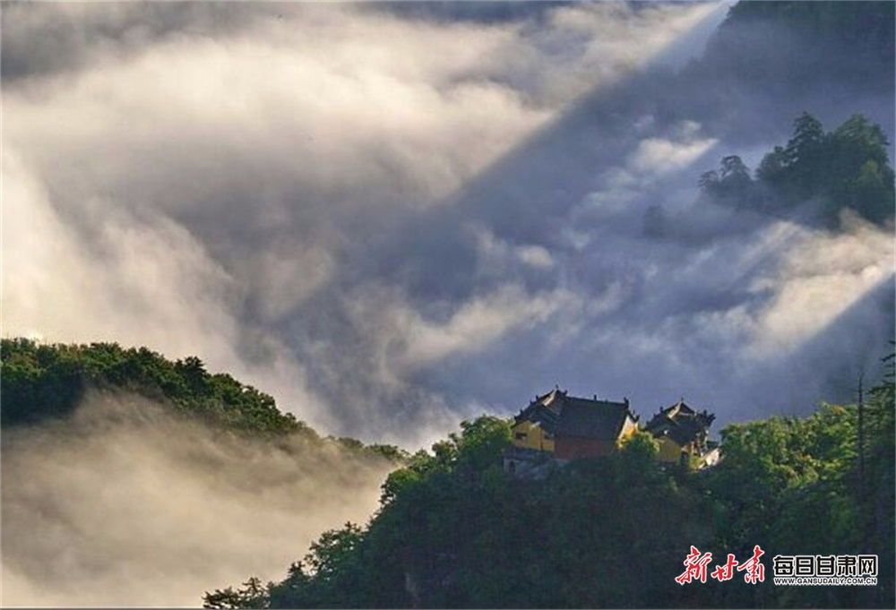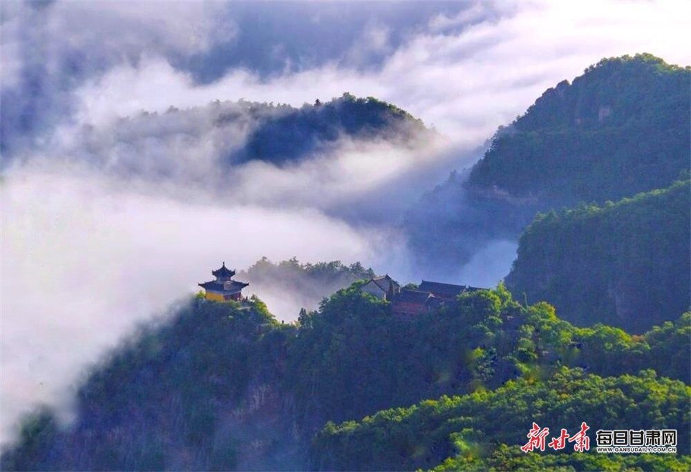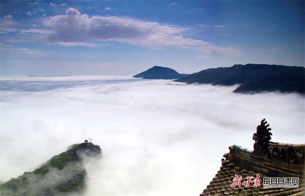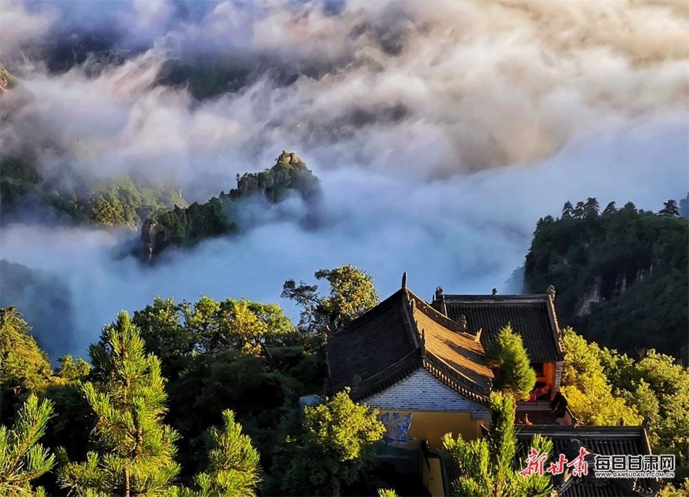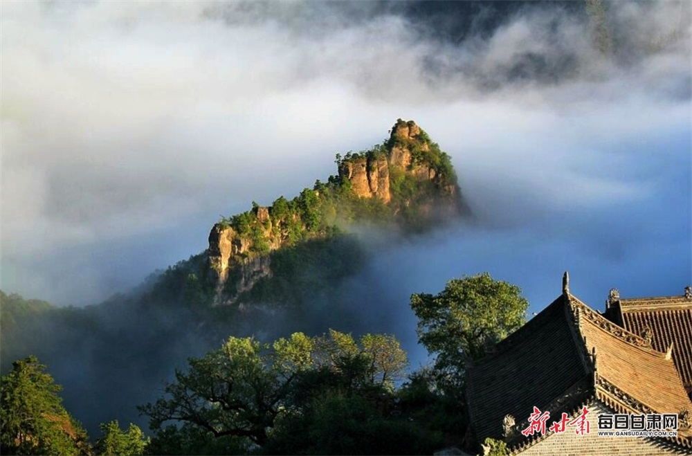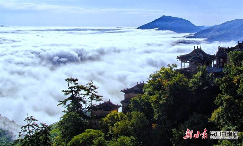云海随风时而温柔平静,时而跌宕汹涌,它们用变幻的留白,把秋日的崆峒山装扮得更加秀丽。