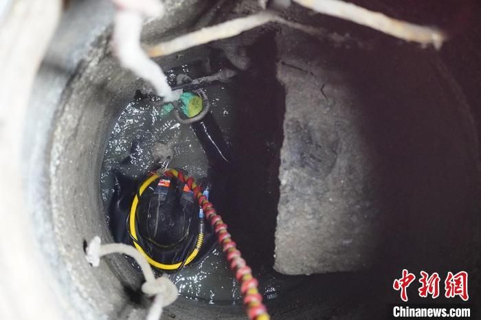 “管道下都是污水,水下能见度为零。检查系统管道、判断管道朝向、捞取管道堵塞物,全靠一双手‘摸黑’工作。”王德鹏说,潜水装备和铅块负重40斤,加上水压,管道内佝偻着腰走,每次干完活从井下拉上来,整个人浑身湿透了。