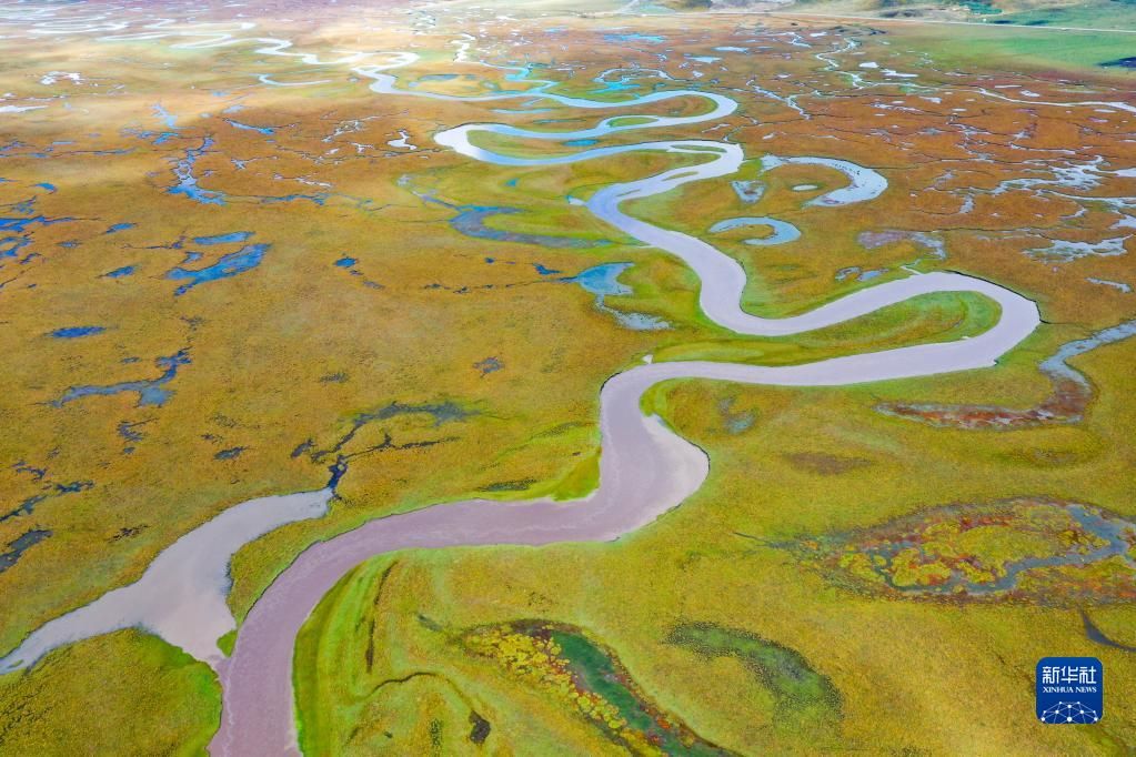 这是玛曲县阿万仓湿地内的河流和沼泽(9月17日摄,无人机照片)。新华社记者 郎兵兵 摄