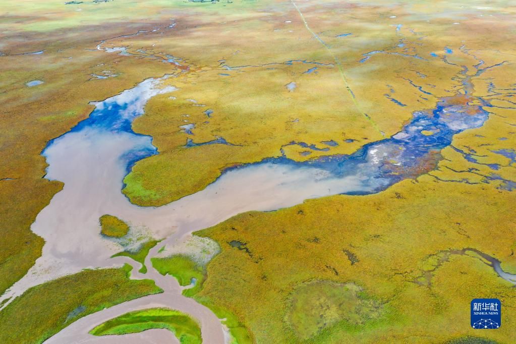 这是玛曲县阿万仓湿地内的一处沼泽(9月17日摄,无人机照片)。新华社记者 郎兵兵 摄