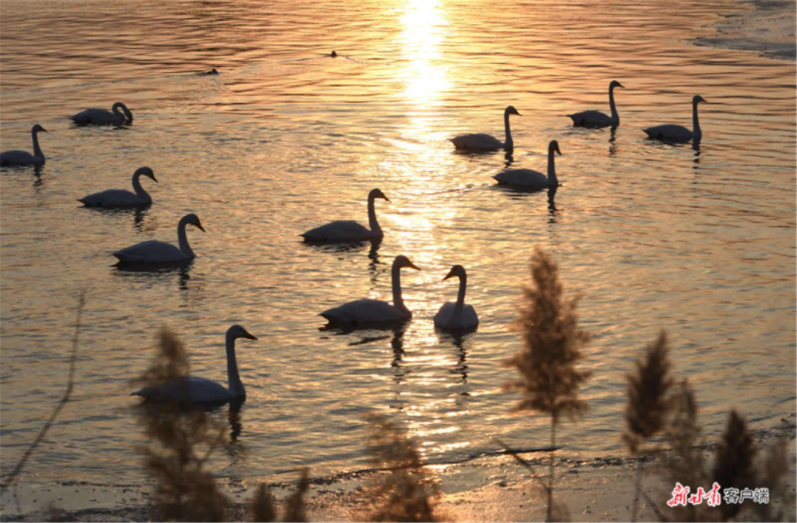 八盘峡黄河湿地天鹅栖息。新甘肃·甘肃日报通讯员 史有东 摄