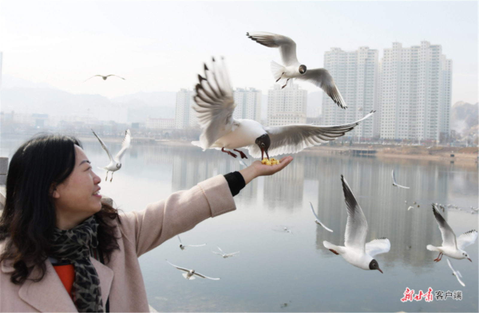 人鸥嬉戏刘家峡。新甘肃·甘肃日报通讯员 史有东 摄