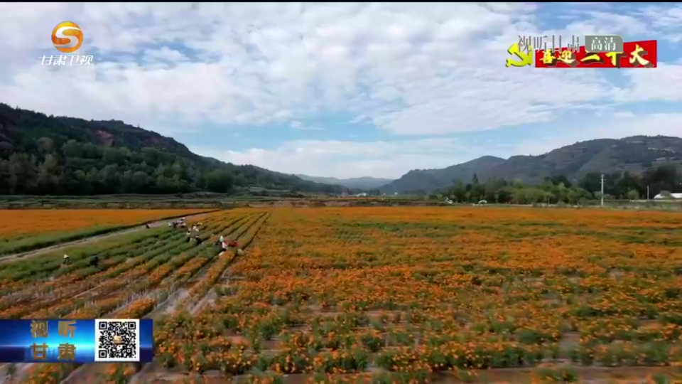 渭源县3.6万亩万寿菊近期迎来丰收。在渭源县清源镇,农户们穿梭在花田里,开始第二茬万寿菊花朵采摘。