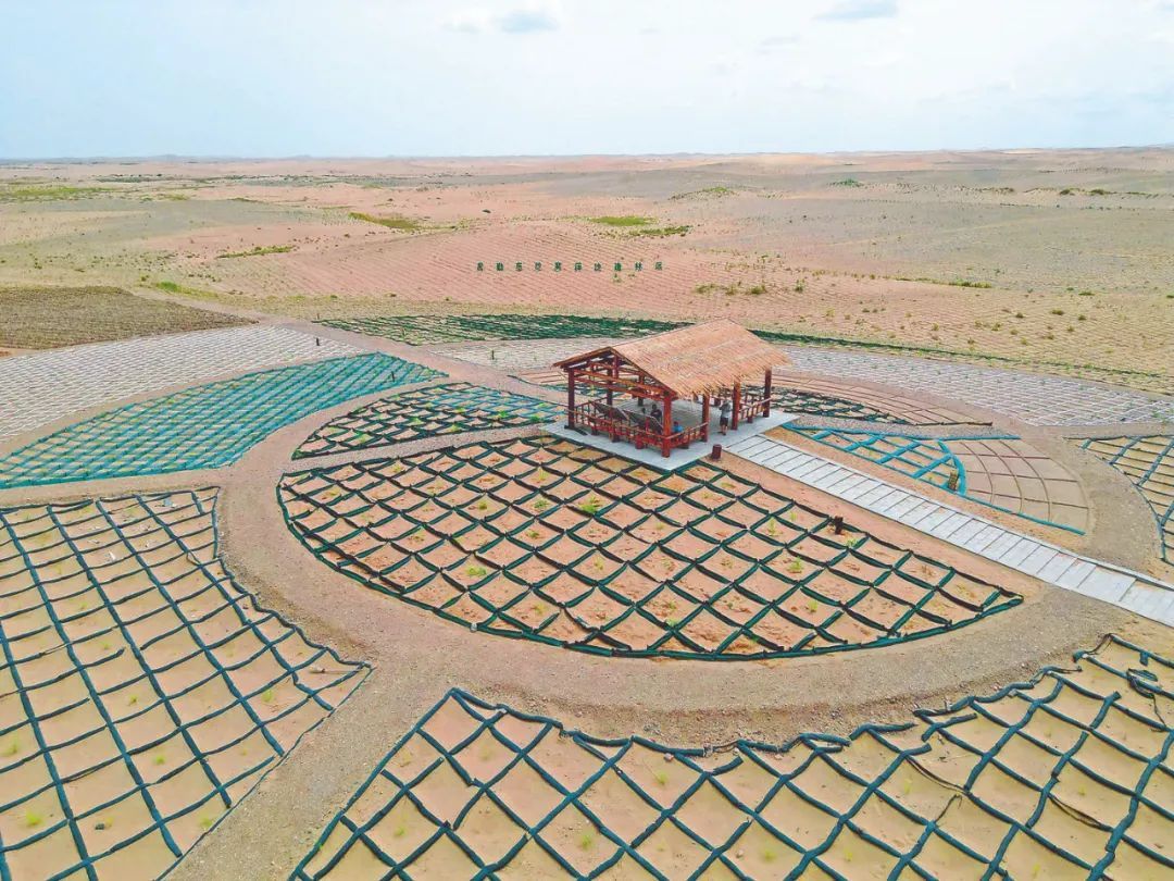 他们在这里不仅试验种植各类沙生植物,还要试验研究各种治沙技术。近十年来,民勤县深入推进科技兴林,增强综合治理能力。在造林绿化中,坚持因水定绿、因地制宜,以造林小班(细班)为单位,根据不同区域不同地理特征,差异化设计栽植模式、灌溉方式、补植范围等多种要素,对砂石含量较高、土壤墒情较差、蓄水能力较弱、水源远近差异等制约造林成活率的区域短板问题,分别采取“大穴整地+积沙栽植”“覆膜裹膜保墒措施”“小管出流”拉灌、沟灌等措施,提高造林成活率。积极推行小乔木与灌木结合的多树种造林模式,建立多树种混交生态系统,科学选择造林混交树种、混交比例、混交方式等,实现生态工程建设保护成效的长期性。积极与中科院寒旱所、甘肃省治沙研究所等科研单位、高等院校进行技术交流与合作,大力推广“麦草沙障+落水栽植沙生植物”“砂石滩地开沟+落水栽植”等治沙模式,试验推广“工程压沙+低密度造林+种草”的模式,依托科研单位、高等院校的科研力量,在西大河、青土湖等区域建成不同类型的防沙治沙示范区,集中展示聚酯、尼龙网、生态垫、土工编制袋、粘土沙障、芨芨草、砂砾石等治沙新技术、新材料20多项。以青土湖、特色林果业示范点和主干道路绿化等为重点,开展梭梭、沙拐枣、白刺等多树种造林试验示范,实施抗旱造林新技术试验示范1500亩。建成民红高速公路、红东路等多树种造林示范基地。