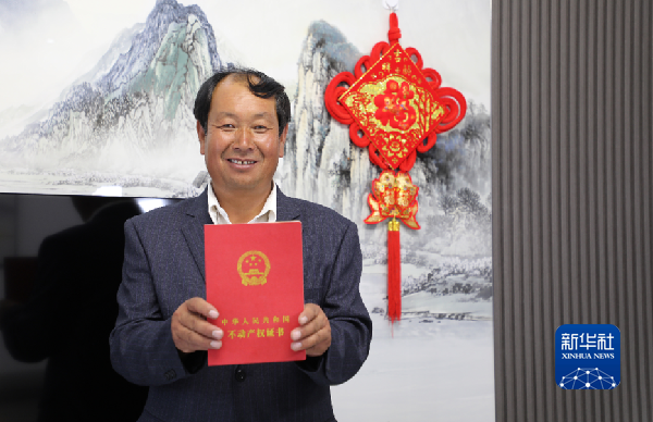 9月15日,在祁连镇祁连村下河安置点,村民邓发斌展示拿到的房屋不动产权证书。新华社记者张智敏 摄