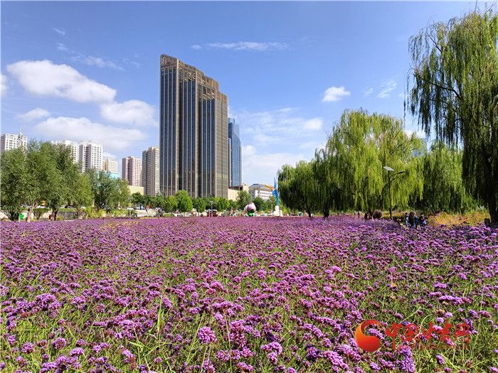 中秋时节,兰州马拉松公园大片马鞭草花海依然绽放,前来健身、休闲的市民络绎不绝。