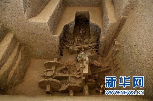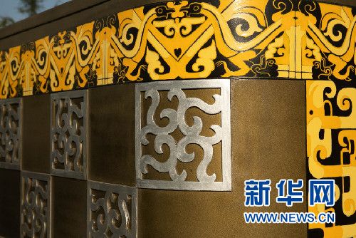 (马家塬遗址车舆复制品的车栏板及车饰。)