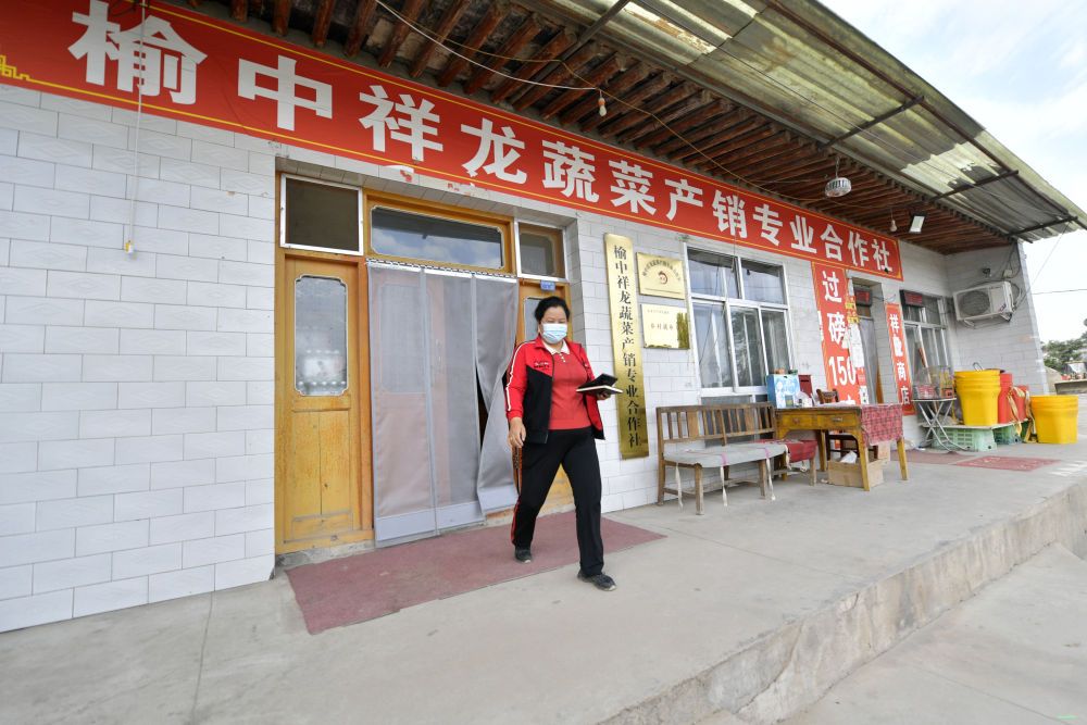 9月21日,在榆中祥龙蔬菜产销专业合作社,豆俊兰准备前往田间收菜。新华社记者 范培珅 摄