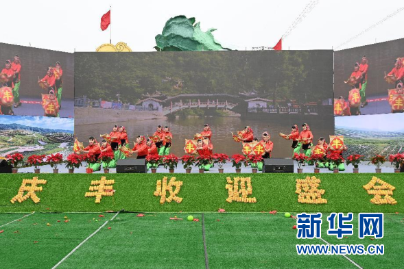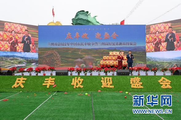 9月23日,在兰州市2022年中国农民丰收节暨兰州高原夏菜新品博览会开幕式上,农民群众开展文艺汇演。新华社记者范培珅 摄