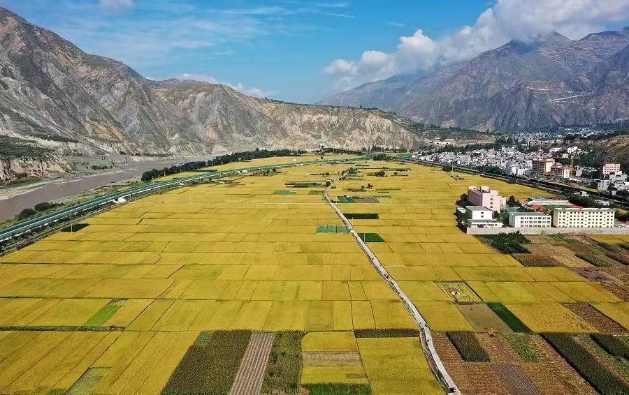 走进位于白龙江畔的武都角弓镇,4000亩金灿灿的稻米地映入眼帘,沉甸甸的稻穗随风摇曳,散发出阵阵馨香。农人们穿梭于田间地头,忙着收割、捆扎、脱粒,沉浸在收“米”的幸福中。