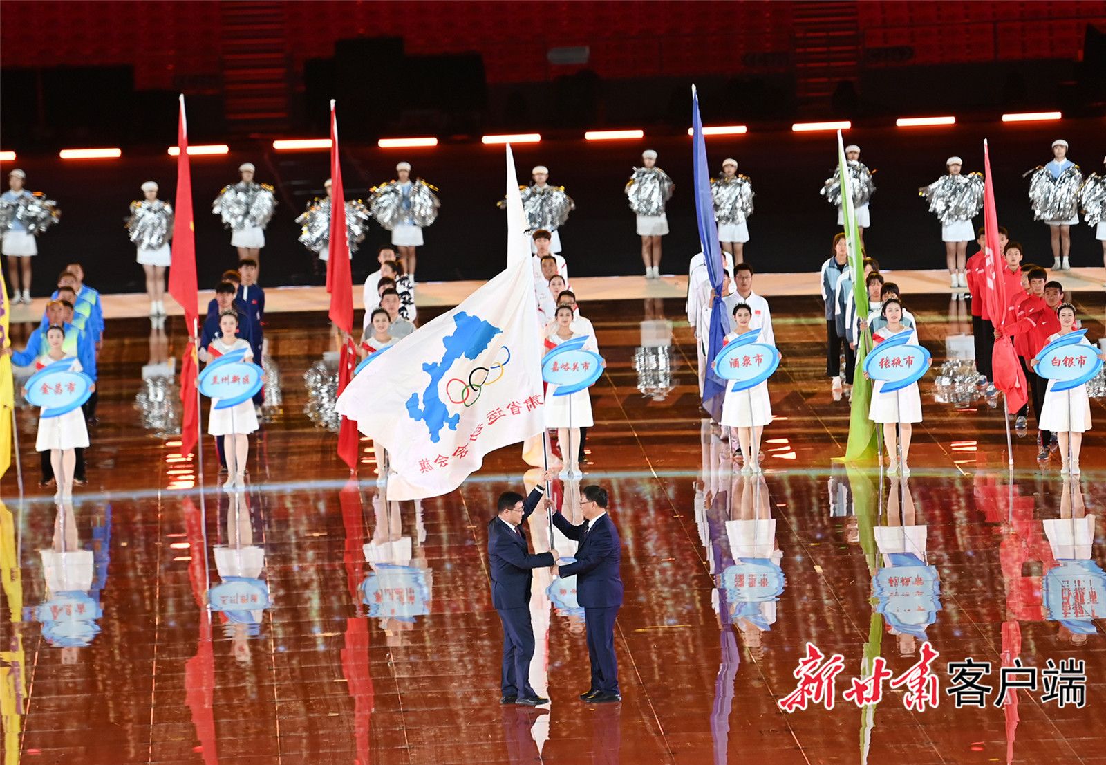 兰州市与甘肃省第十六届运动会主办城市定西市交接会旗,并播放了定西市宣传片。