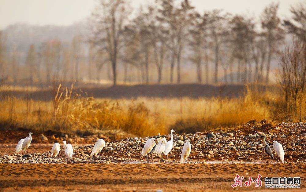 秋日,走进位于临洮县境内的洮河国家湿地公园,清澈的河水拍打着岸边的卵石,三三两两的野鸭在水中追逐嬉戏,河水缓缓而来,金色的植被与蓝天交相辉映,林鸟相依,一幅富有活力生机的陇原水美画卷跃然眼前。