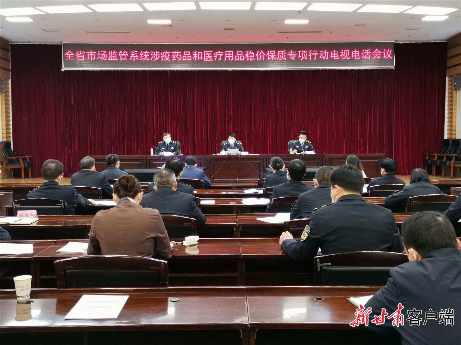 全省市场监管系统涉疫药品和医疗用品稳价保质专项行动电视电话会议现场。新甘肃·甘肃日报记者 蔡文正 摄
