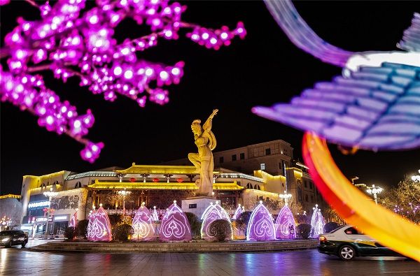 2023年春节,敦煌市精心打造文化灯展和城区亮化工程,为广大市民游客营造欢乐、喜庆、祥和的春节文化氛围。目前,各类灯组已全部亮灯,各色彩灯把古郡敦煌装扮得格外靓丽。
