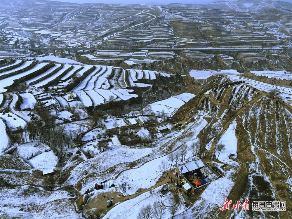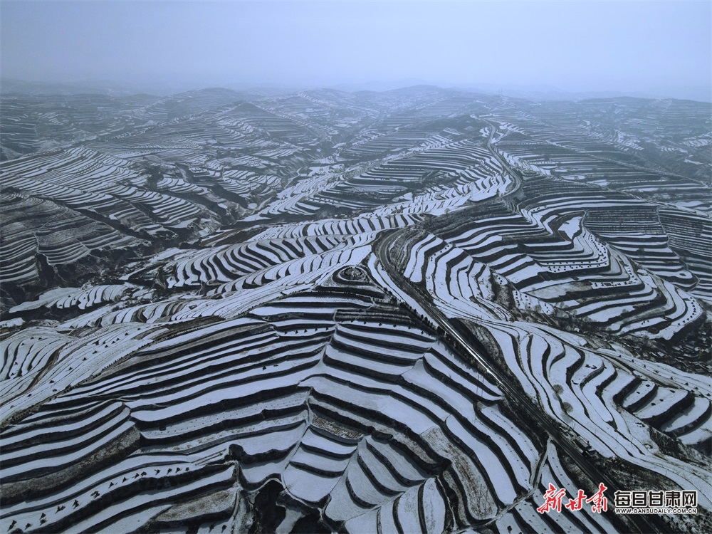 寒冬时节,一场冬雪使陇西县马家山的黄土高原披上了一层银装,云遮雾罩中的梯田,层层叠叠相互交错,在白雪的映衬下如诗如画。