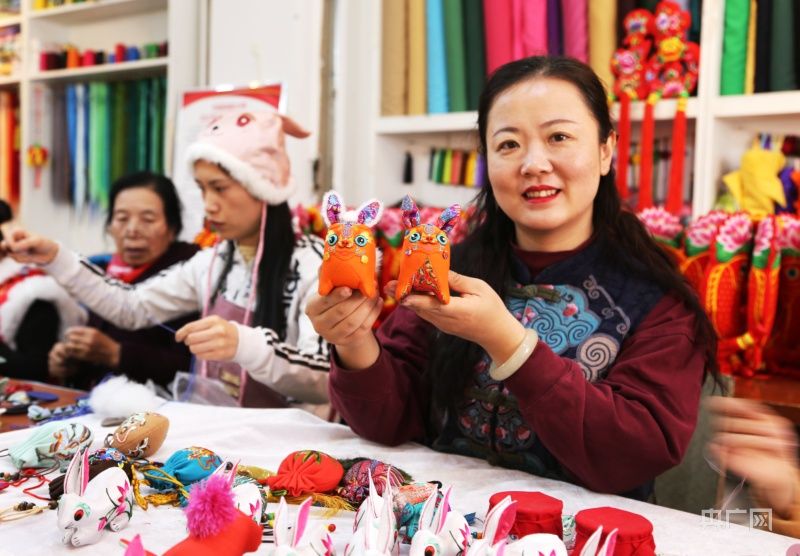 赵丽珺和绣娘们一起赶制兔元素香包(央广网发 盘小美 摄)