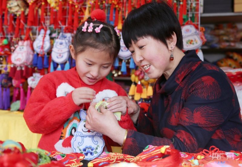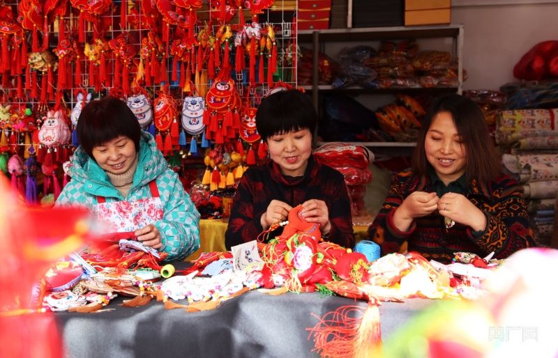 庆阳岐黄文化传播有限公司绣娘赶制新春主题香包饰品(央广网发 盘小美 摄)