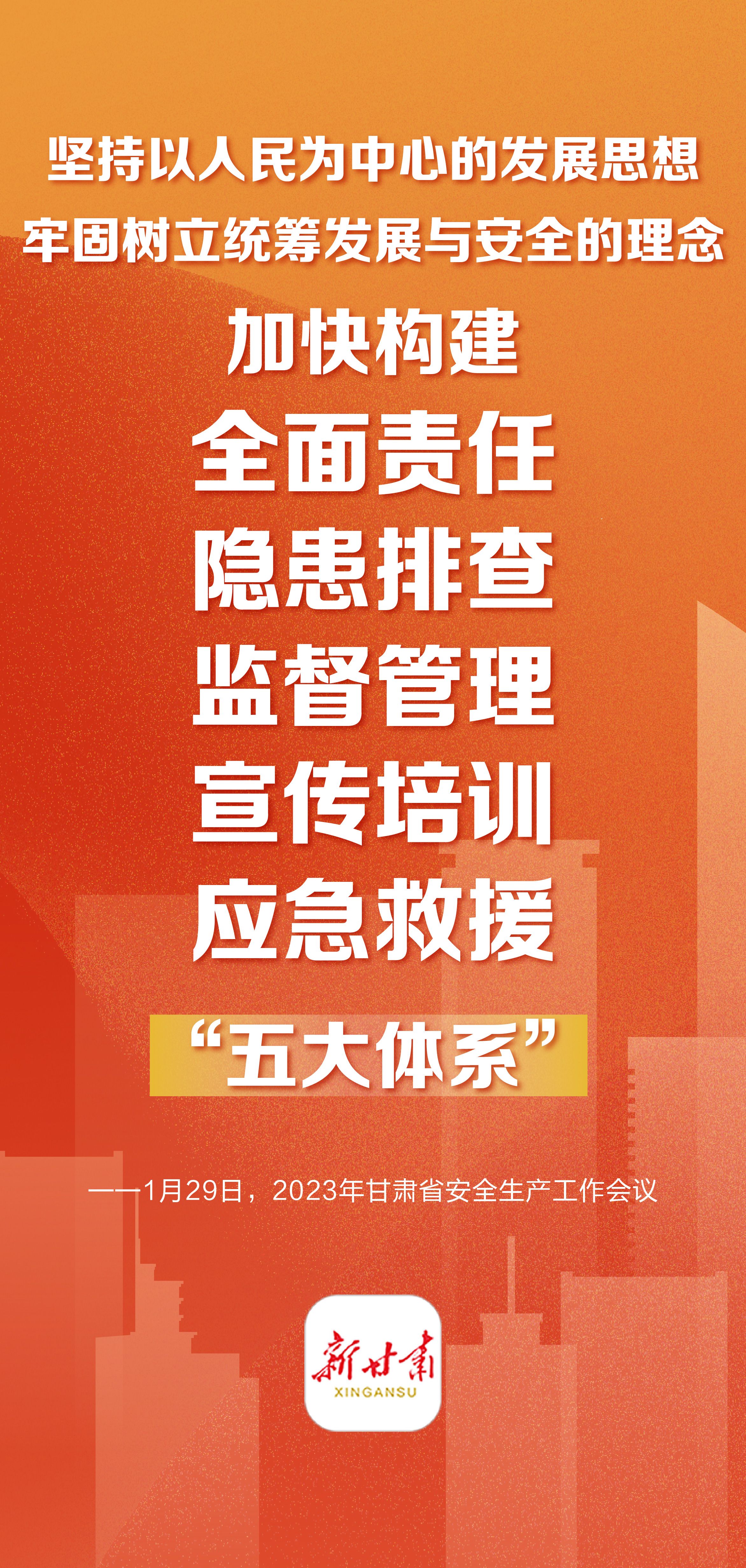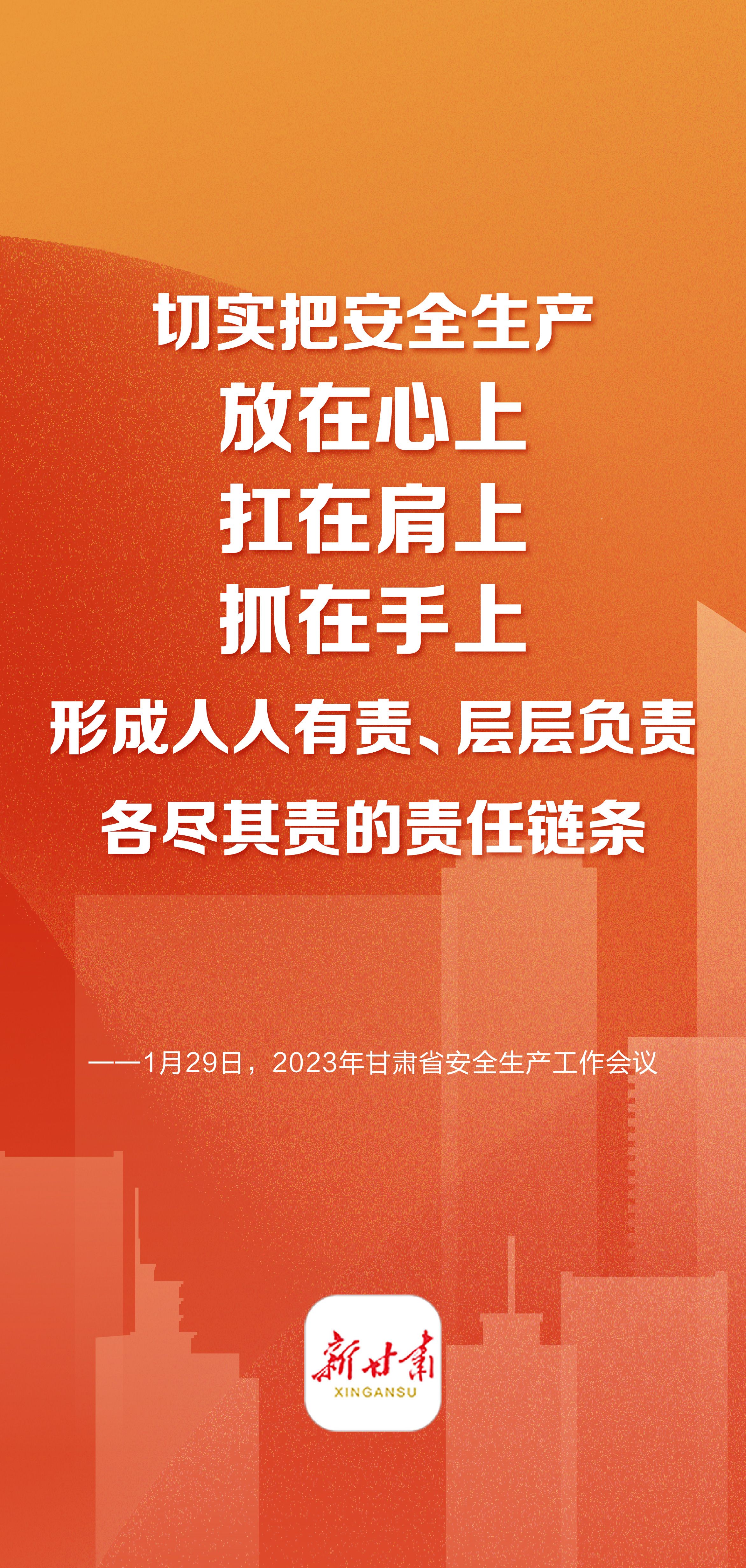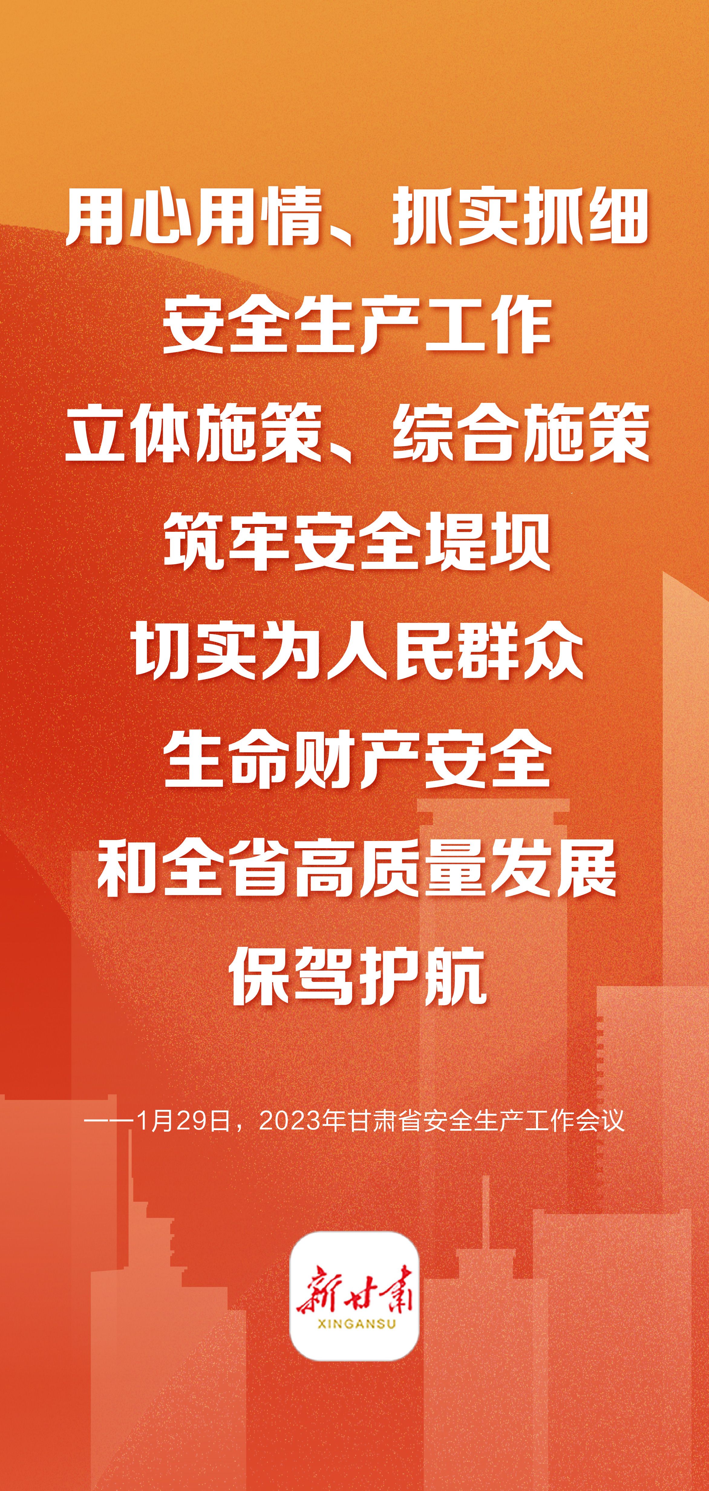 1月29日上午,2023年全省安全生产工作会议暨省安委会第一次全体(扩大)会议在兰州召开,会议强调:用心用情、抓实抓细安全生产工作,立体施策、综合施策筑牢安全堤坝,切实为人民群众生命财产安全和全省高质量发展保驾护航。