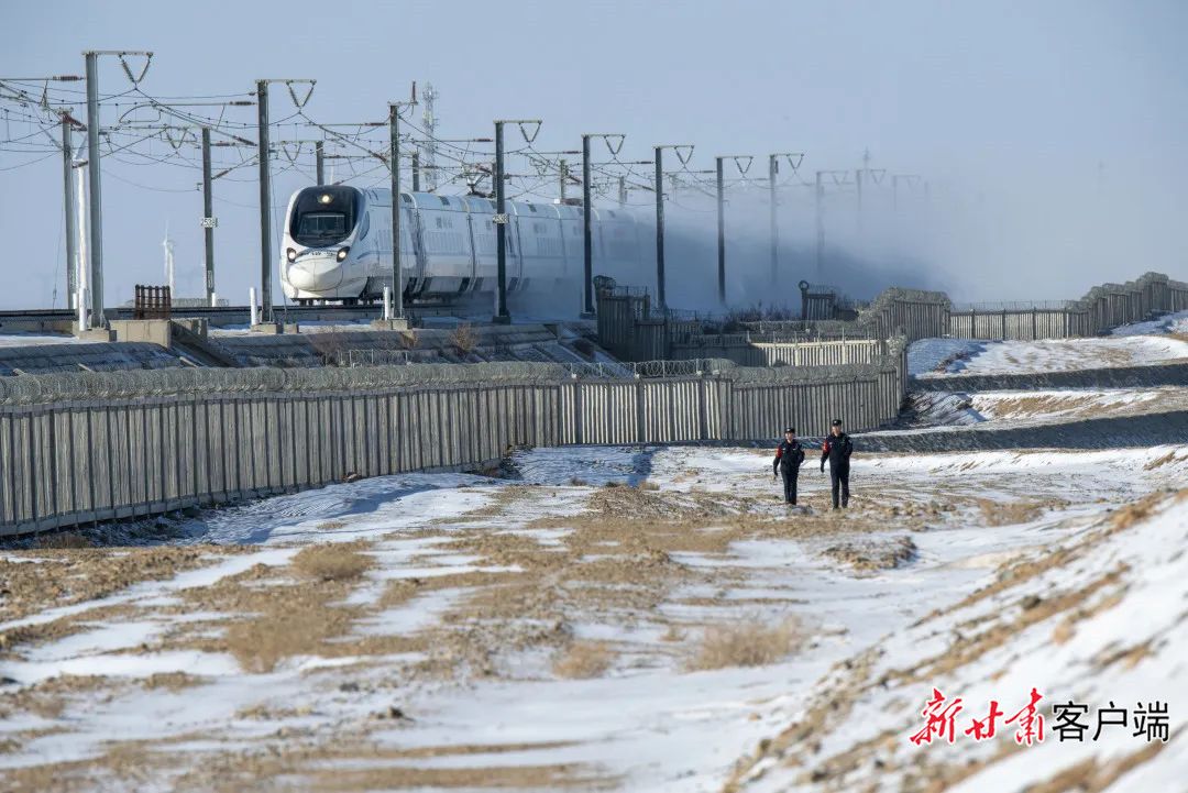 清晨7时,河西走廊的夜幕尚未褪去。在兰新高铁出疆进甘的最后一段铁路线,兰州铁路公安局武威公安处柳沟南车站“00后”民警闫立国和同事们已经开始了一天的工作。冒着严寒,踩着积雪,小心翼翼前行,巡查过一段线路后,拿出笔记本进行记录。