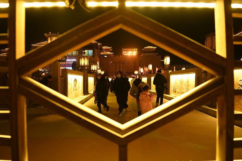 1月31日,游客在九曲黄河灯阵游览。新华社记者 范培珅 摄