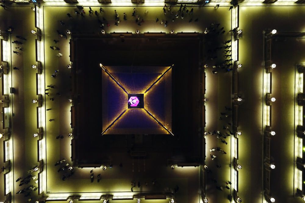 这是1月31日拍摄的九曲黄河灯阵局部(无人机照片)。新华社记者 范培珅 摄