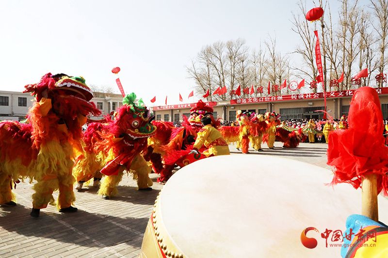 伴随着铿锵的锣鼓节奏,社火展演在龙狮队表演中拉开帷幕,一条条锦色长龙翻腾起舞,时而飞腾跳跃,时而入海破浪,在鼓乐的衬托中彰显着蓼泉人民锐意进取、奔腾争跃、意气风发的精神风貌。“八仙马子”是西北地区社火表演形式的典型代表,演员们身穿南极仙翁及八仙服装,手拿道具,南极仙翁绑挂纸鹤,张果老绑挂纸驴,其他7人绑挂纸马,在鼓点的伴奏下依次上场表演。由蓼泉镇各村妇女代表组成的百人秧歌迈着轻盈的脚步,舞着鲜艳的绸缎,合着喜庆的节拍,伴着优美的舞姿舞动着巾帼风采。老社火表演队的队员们身穿喜庆艳丽的服装,头戴五彩头饰,手舞彩扇,腰系彩带,踏着欢乐喜庆的鼓点,热火朝天地扭着唱着,鼓点时而紧凑,时而舒缓,时而欢乐,上演了一场年味十足的民俗文化盛宴。