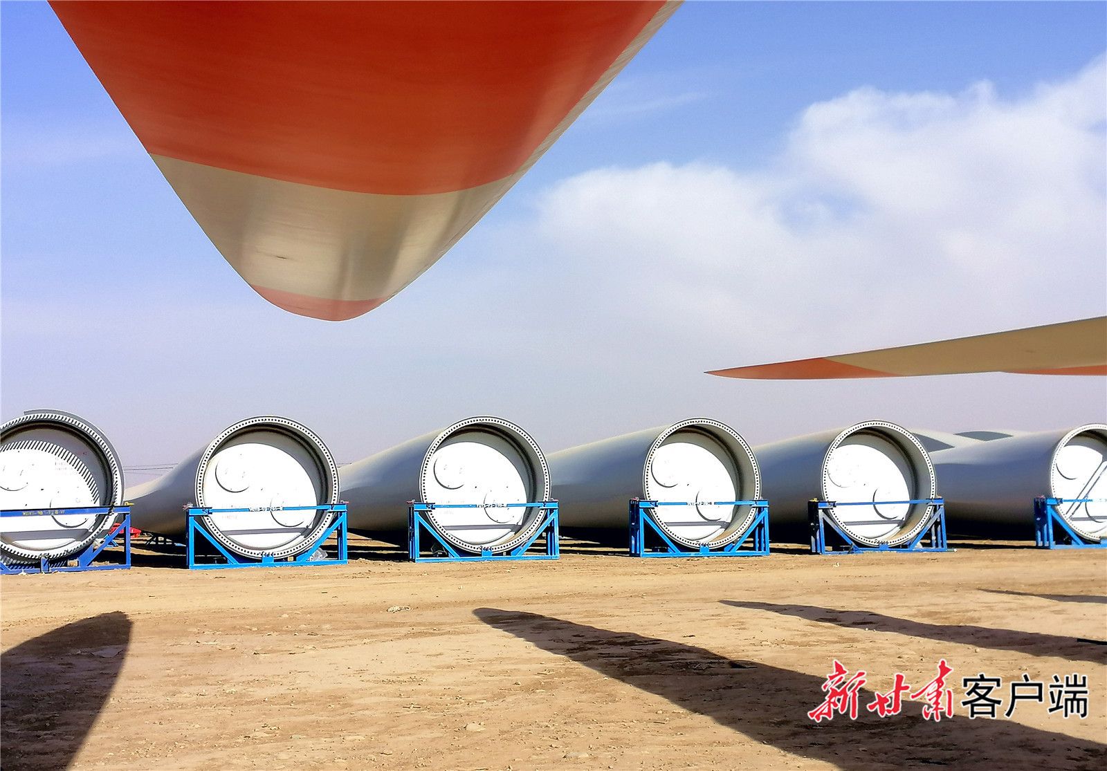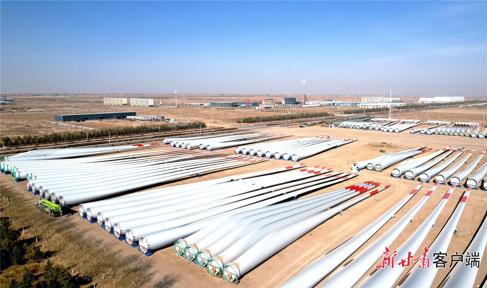 摆放在堆场上的风机叶片。新甘肃·甘肃日报记者 金奉乾摄