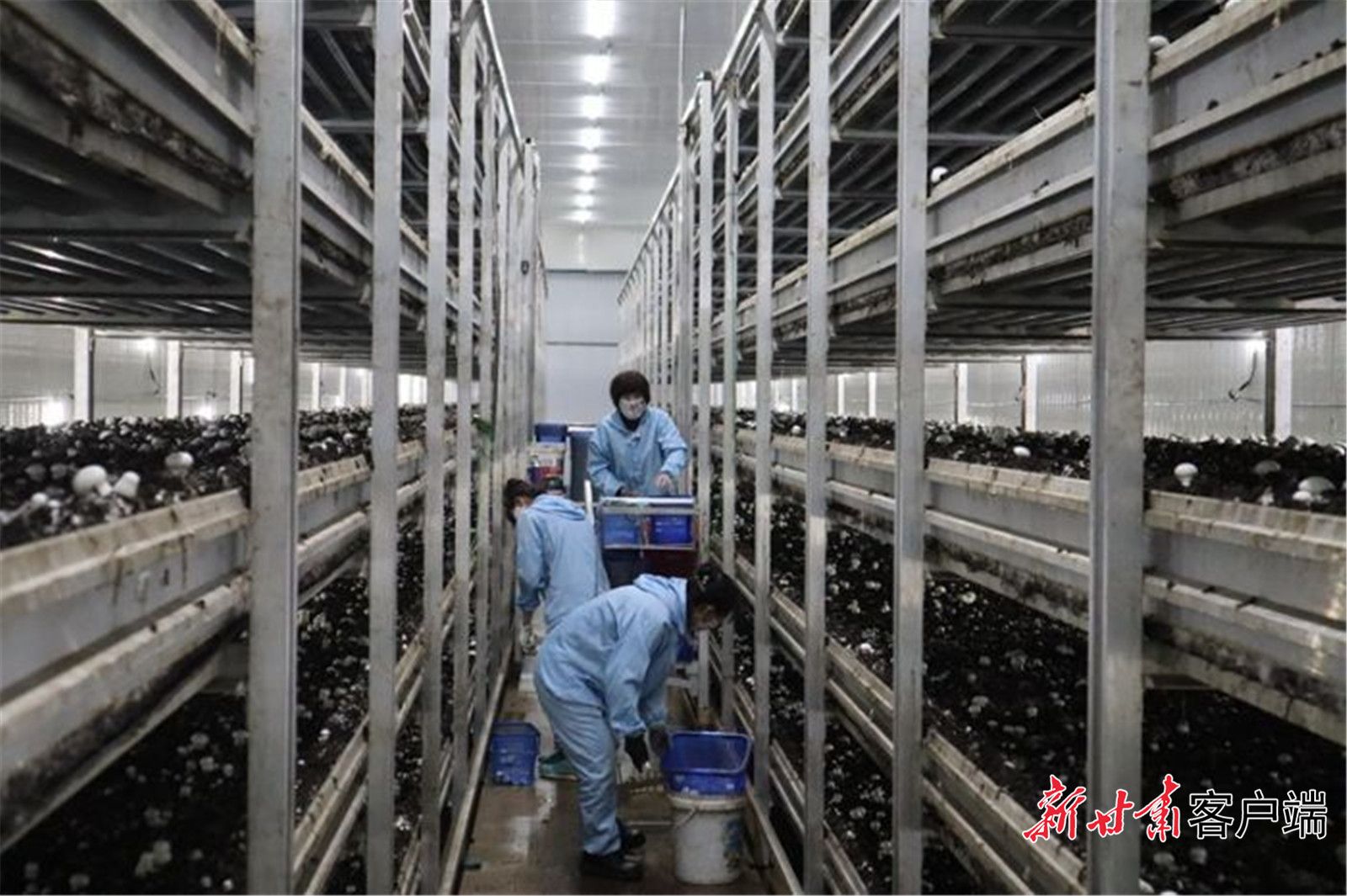 近日,在位于临泽县的甘肃鸿泽农业开发有限公司食用菌工厂的生产车间,一个个双孢菇长势喜人,工人们忙着采摘入筐,这些蘑菇将陆续销往全国各地。