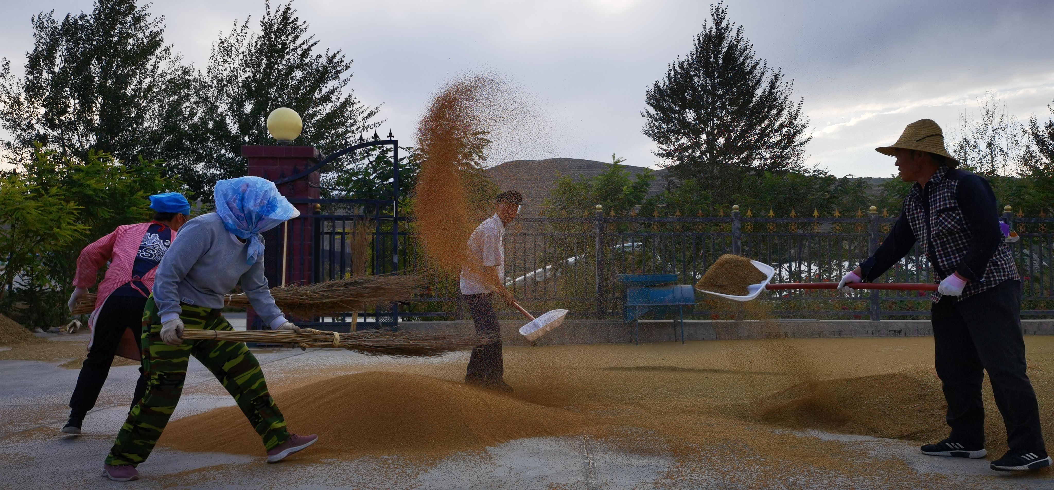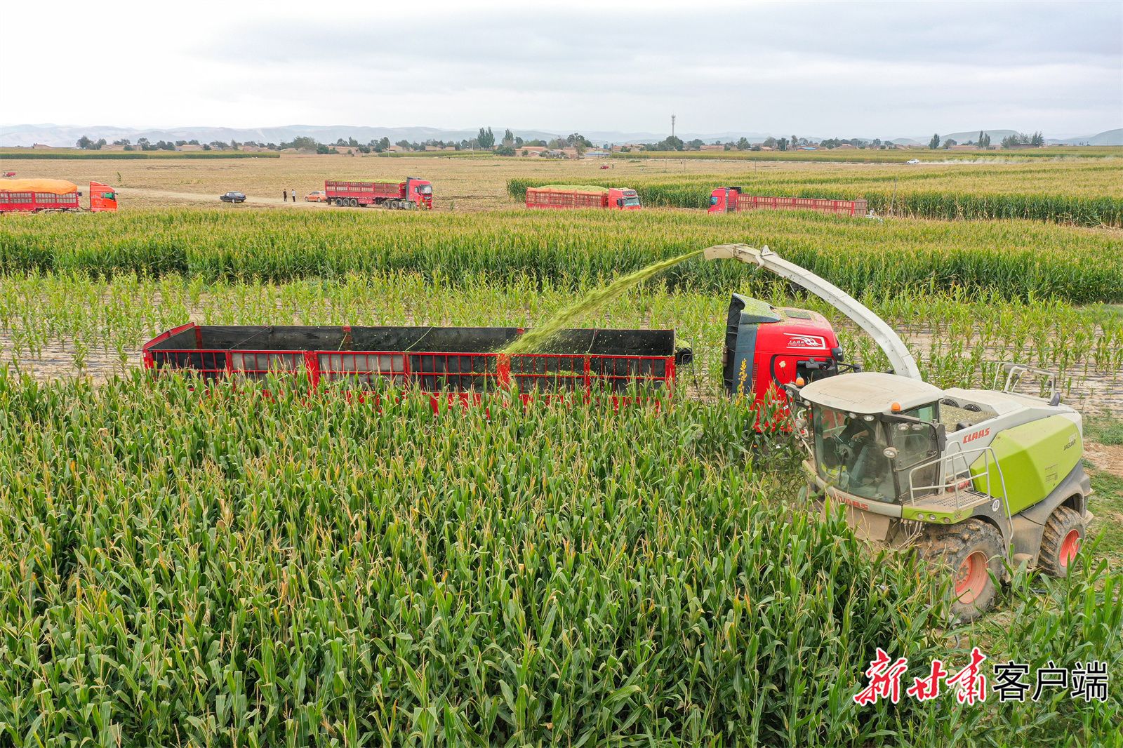 会宁县河畔镇李家塬现代丝路寒旱产业园机器采收玉米。