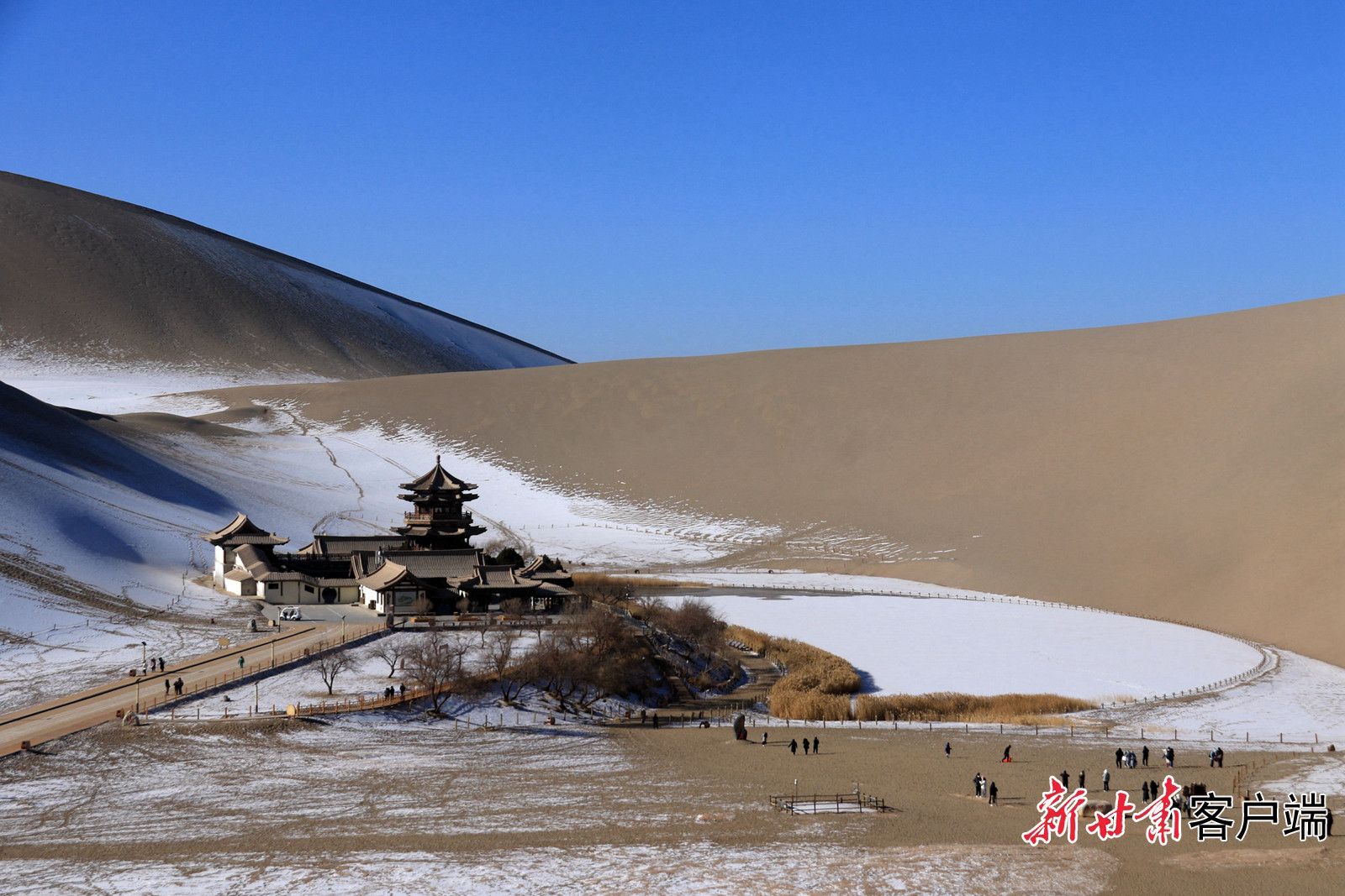 ▲1月23日,游客在敦煌市鸣沙山月牙泉景区游览。