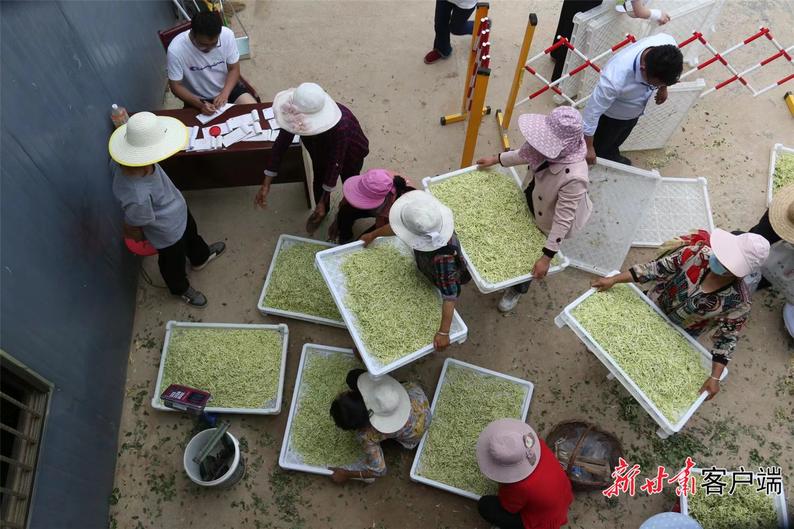 种植户在金银花收购点交花。(文中图片由宁县农业农村局提供 邵建设 摄)