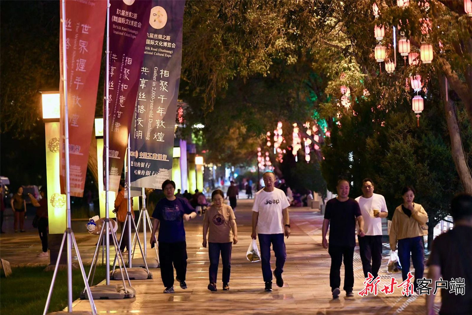 敦煌的夜晚,闪烁耀眼的星空,街头巷尾熠熠生辉的灯光,照亮游客前行的道路,指引他们感受这座城市的文化底蕴。
