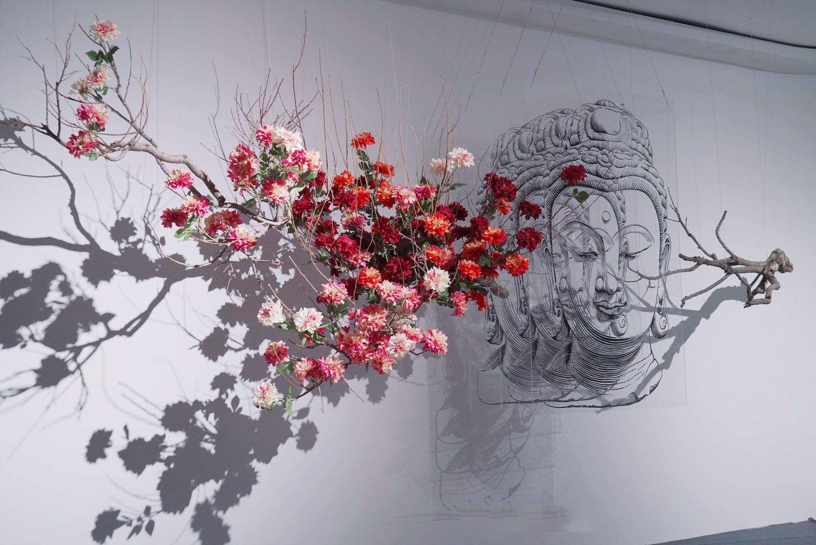 花见敦煌艺术展由花见敦煌(甘肃)文化艺术传播有限公司、兰州国色天香插花艺术有限公司等联合主办。