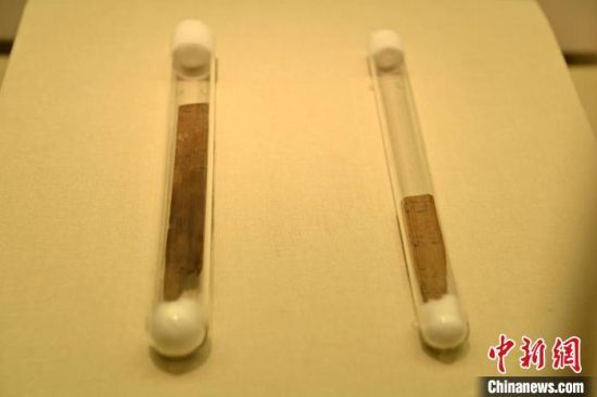 图为保存于真空管中的简牍。记者 李亚龙 摄