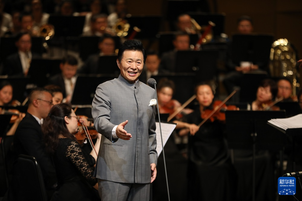 9月6日,在甘肃省敦煌市敦煌大剧院,男高音歌唱家王宏伟在金钟之星“一带一路”民族音乐会上演出。新华社记者 马希平 摄