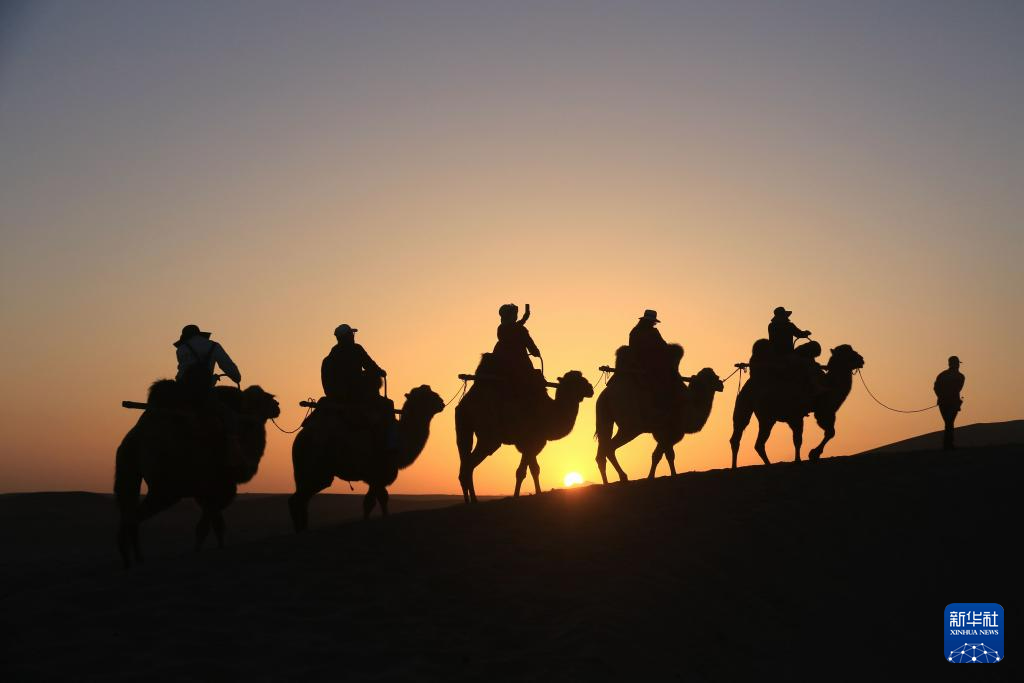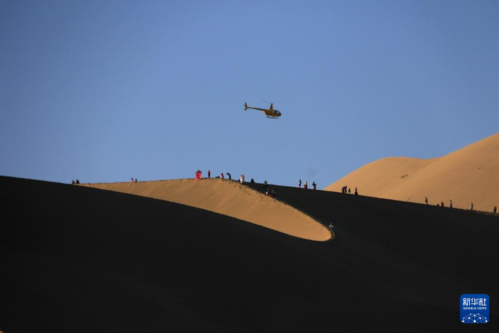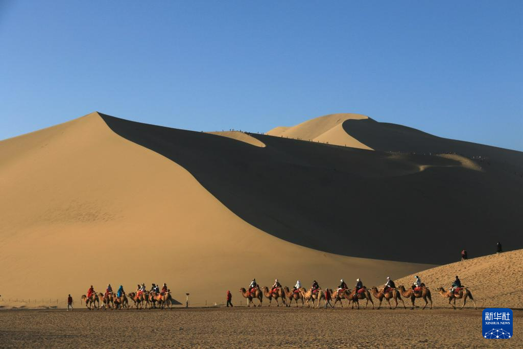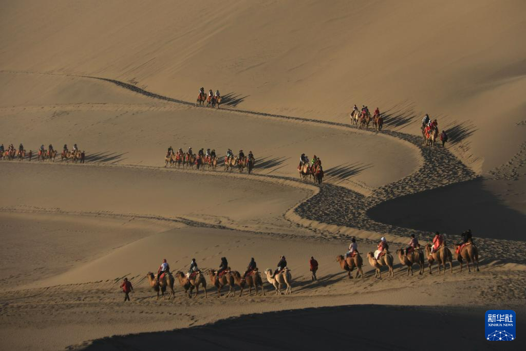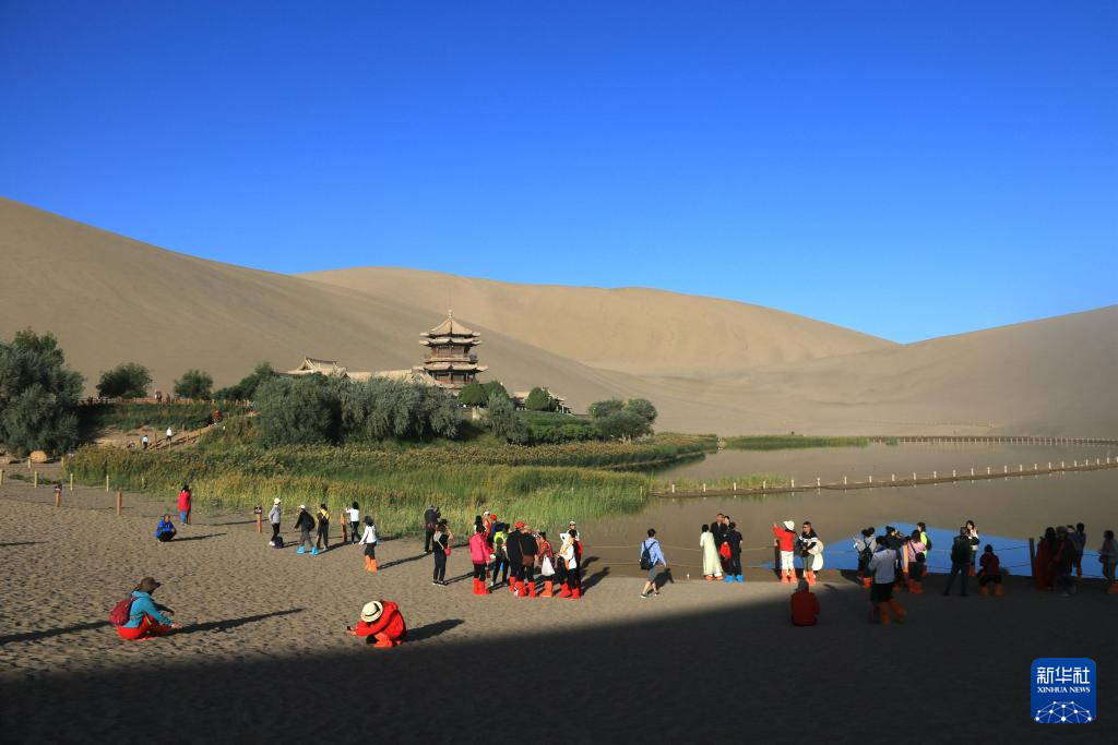 9月9日,游客在甘肃省敦煌市鸣沙山月牙泉景区游览。新华社发(张晓亮 摄)