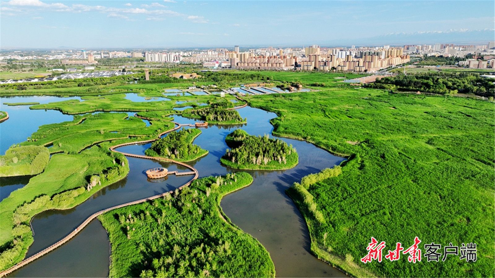 张掖国家湿地公园,是布局西北首个城市湿地博物馆,把原先荒芜的草湖滩转变为美丽的“后花园”,让“湿地之城、塞上江南”名片愈加明亮。时下,湿地公园以其良好的生态环境引来采访团记者参观驻足。