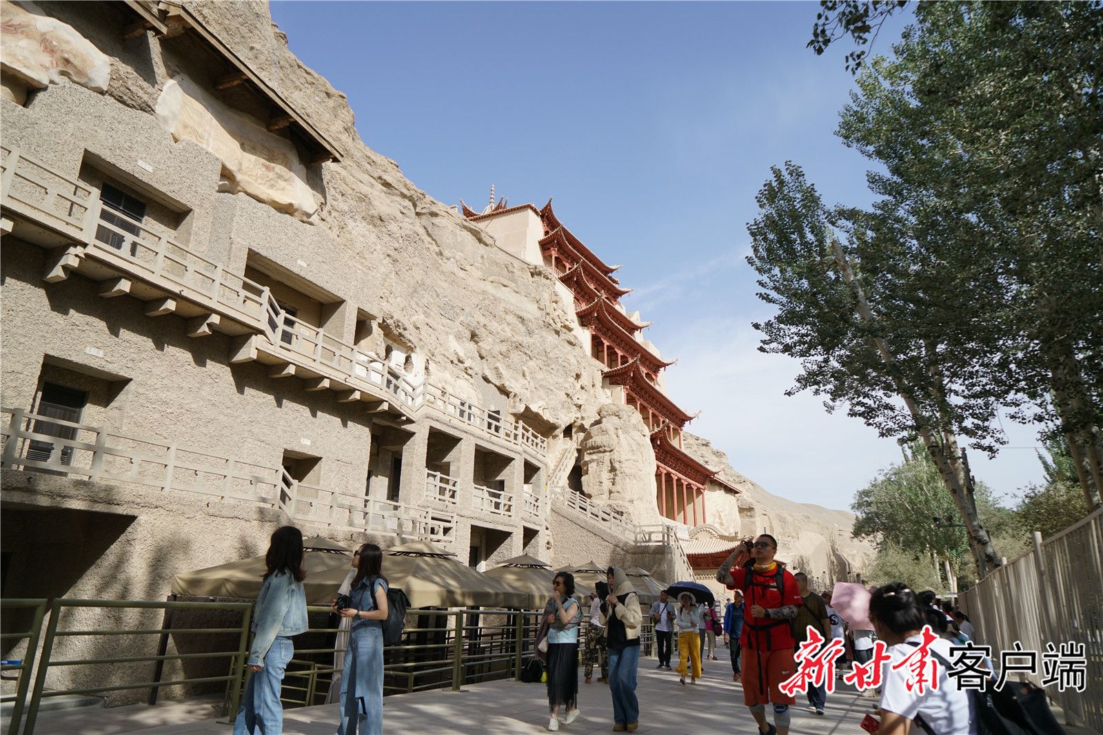 采访团参观莫高窟 李静摄
