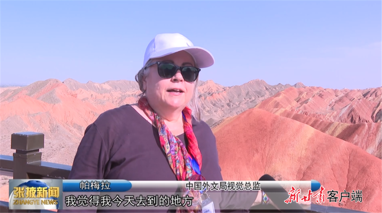 中国外文局视觉总监 帕梅拉:“我觉得我今天去到的地方,有非常好的文化跟旅游的融合,在旅游的过程当中,我们能感受到文化,同时我们能感受到历史,看到大的环境,所以说两者之间融合得是比较好的。”(张掖市融媒体中心供图)