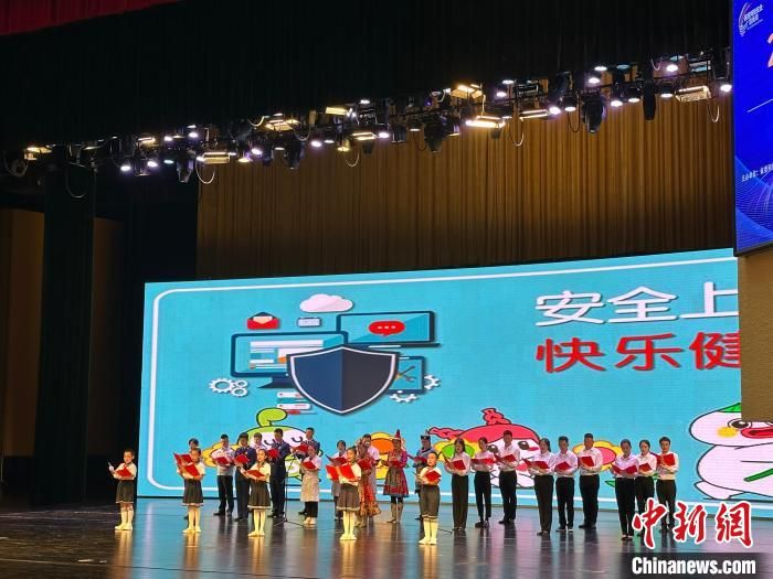 图为2023年甘肃省网络安全宣传周开幕式上,网络文明志愿者集体宣读《坚持文明上网维护网络安全》倡议书,号召甘肃广大青少年依法上网、安全上网、文明上网、理性上网。杨娜 摄