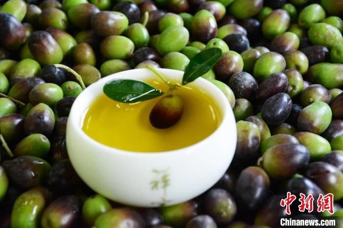图为甘肃陇南市武都区原产油橄榄果及橄榄油。武都区委宣传部供图
