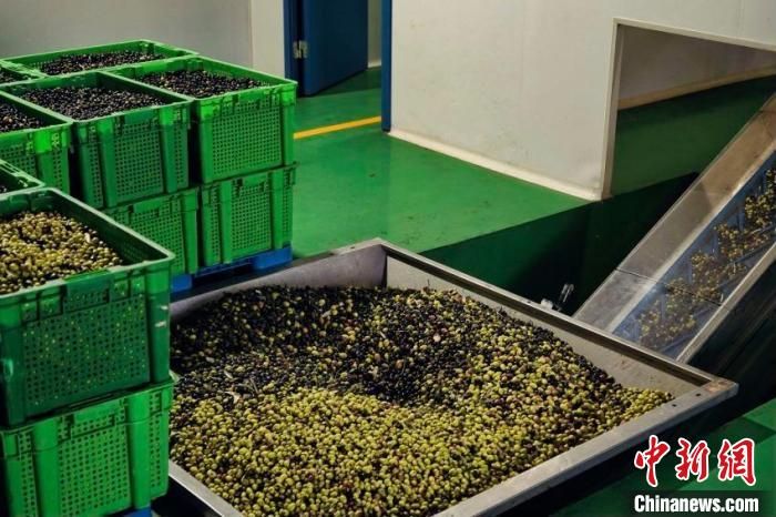在甘肃时光油橄榄科技有限公司加工车间,工作人员将收购来的整框油橄榄果按照比例倒进设备,进行自动化投料、挑选、清洗、粉碎、榨油。武都区油橄榄产业开发办公室主任赵海云接受采访时说,“从鲜果投料到出油,全程冷榨不到一小时,最大程度保留了橄榄油的营养成分,也保证它的新鲜度。”
